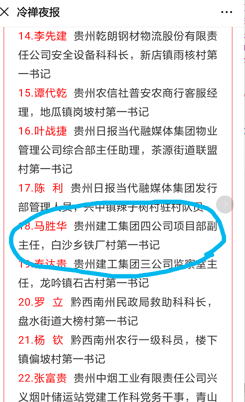 重大喜讯:贵州建工集团四公司共产党员、扶贫干部 马胜华同志受表彰了