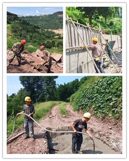 在重庆市长寿区阳鹤山片区截污干管工程项目工地,为了保证工程顺利完工,工人们顶着高温、冒着酷暑,浇筑基础、砌筑挡墙、平整检修便道……忙得不亦乐乎。安全帽挡不住热浪、衣服遮不住汗水,但大家却无怨无悔、努力向前。