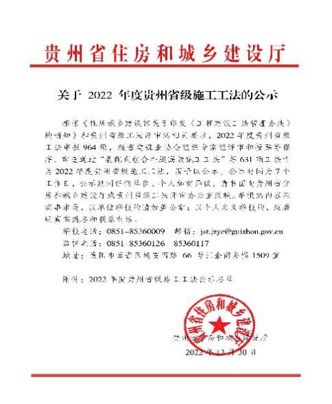 2022年,贵州建工集团四公司多项创新成果获省级工法评定